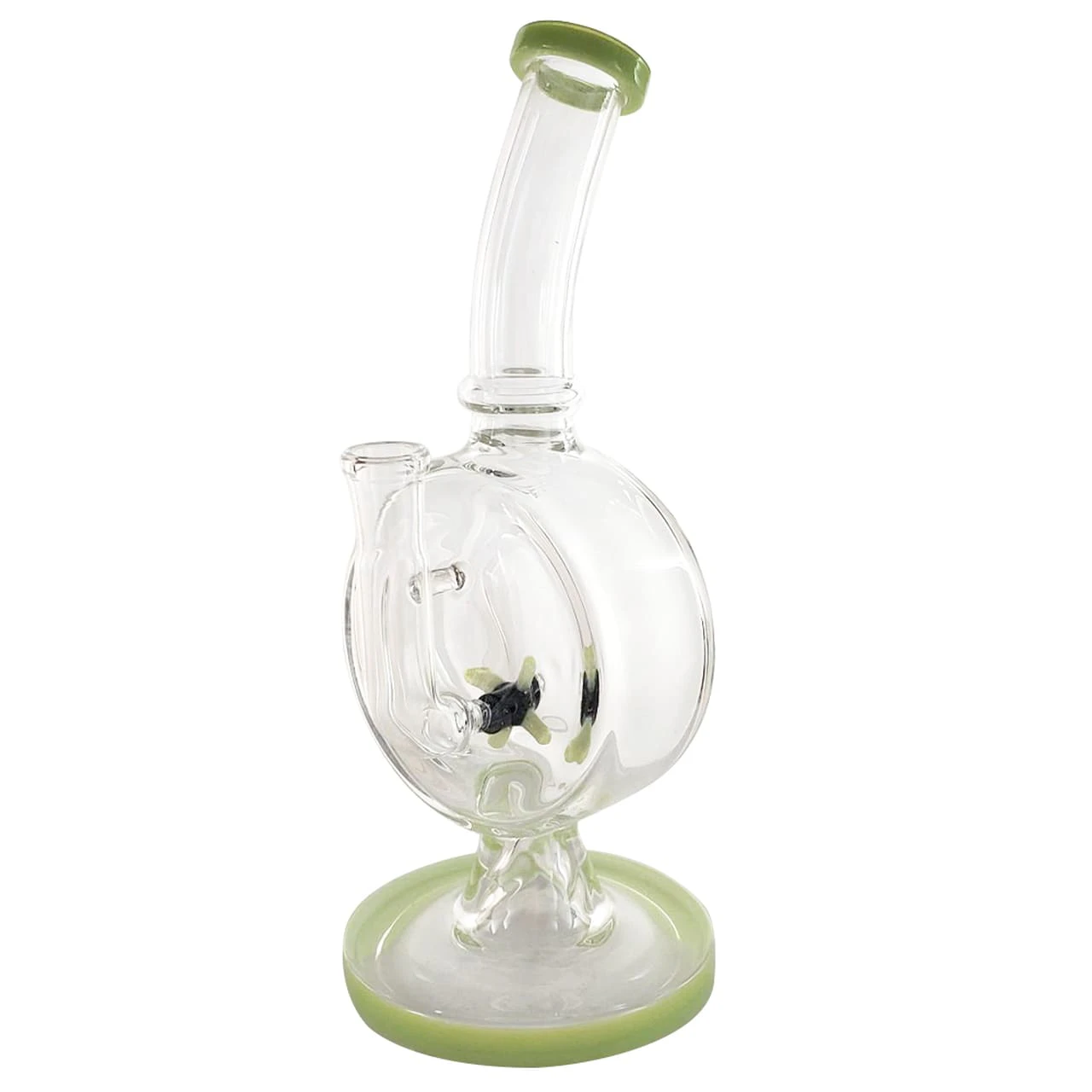 A simple water pipe, this one is easy to clean and maintain while still providing a fantastic smoking experience. This piece features a working propeller perc to spin around while taking your haul. Keep yourself entertained with this beautiful piece from Illuminati Glass.